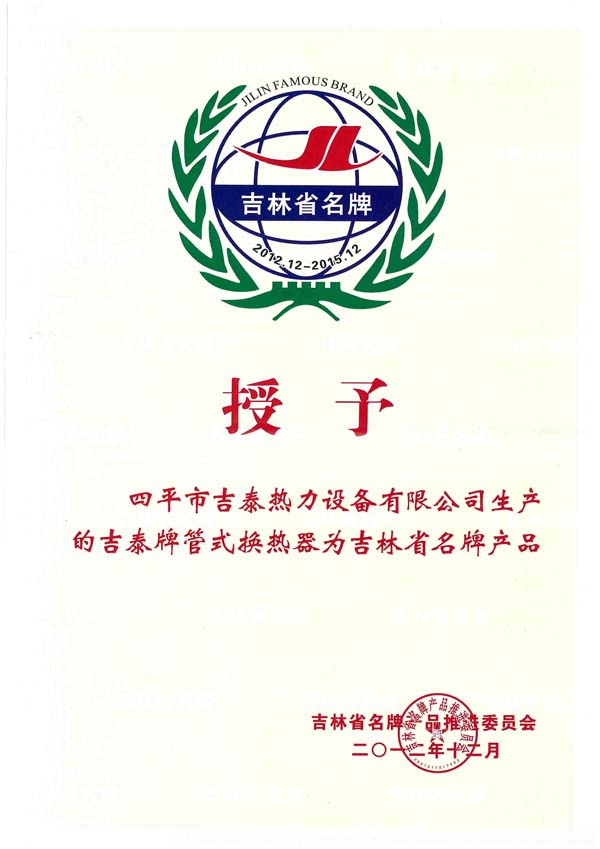四平市吉泰熱力設備有限公司始建于1996年,坐落在全國衛(wèi)生園林城市,擁有“中國換熱器基地”美譽的四平市,公司擁有雄厚的技術力量和人才優(yōu)勢,國內(nèi)生產(chǎn)設備,完善的檢測手段,是吉林省集設計、開發(fā)、生產(chǎn)經(jīng)營于一體的換熱設備生產(chǎn)企業(yè)。